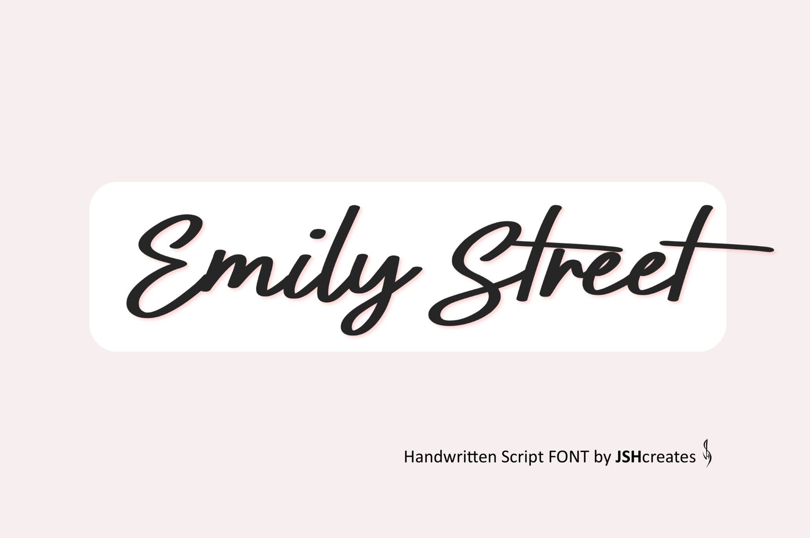 Handlettered font. “Emily Street”. Perfect for advertising and display purposes, including banners, book covers, shirts, posters, logos and much more!